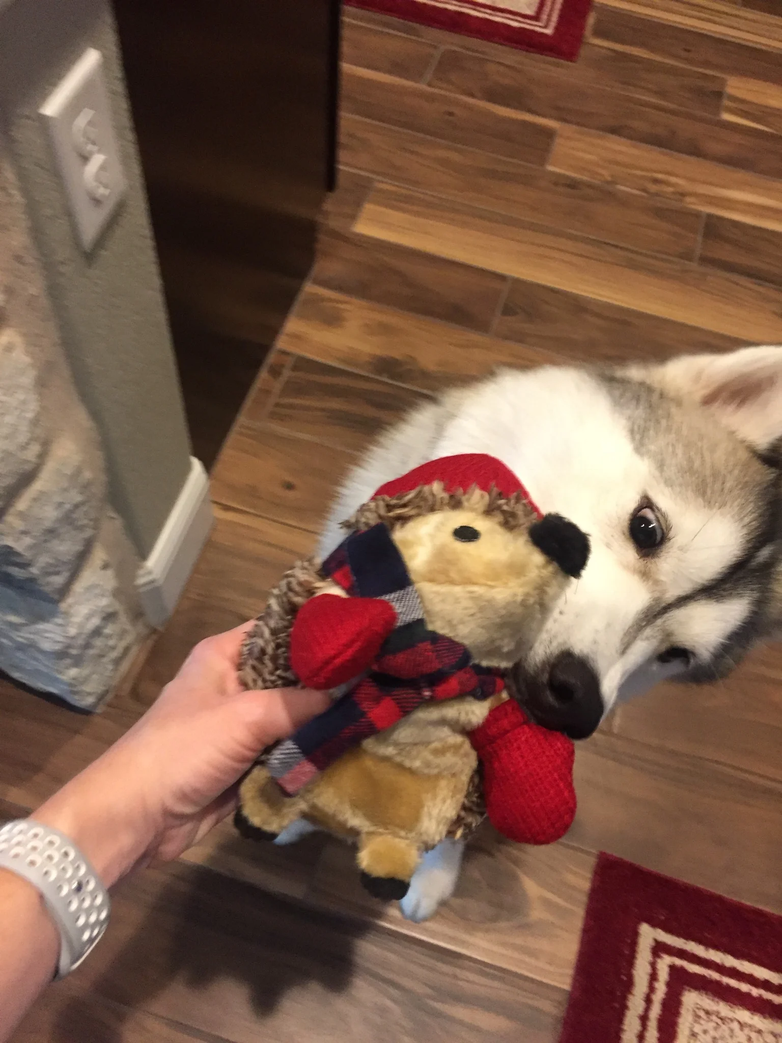 Here’s a video of Gus playing with the hedgehog. He loves to play with toys. I think Gus could be a surgeon because he is very good at cleanly removing the squeaker from a toy while the remainder of the toy remains in tact, then he no longer has any interest in the toy. I wish he would just destroy the toy while removing the squeaker because then I would know it should go in the trash. As it is, the toys are basically still perfectly good, just sans squeakers!