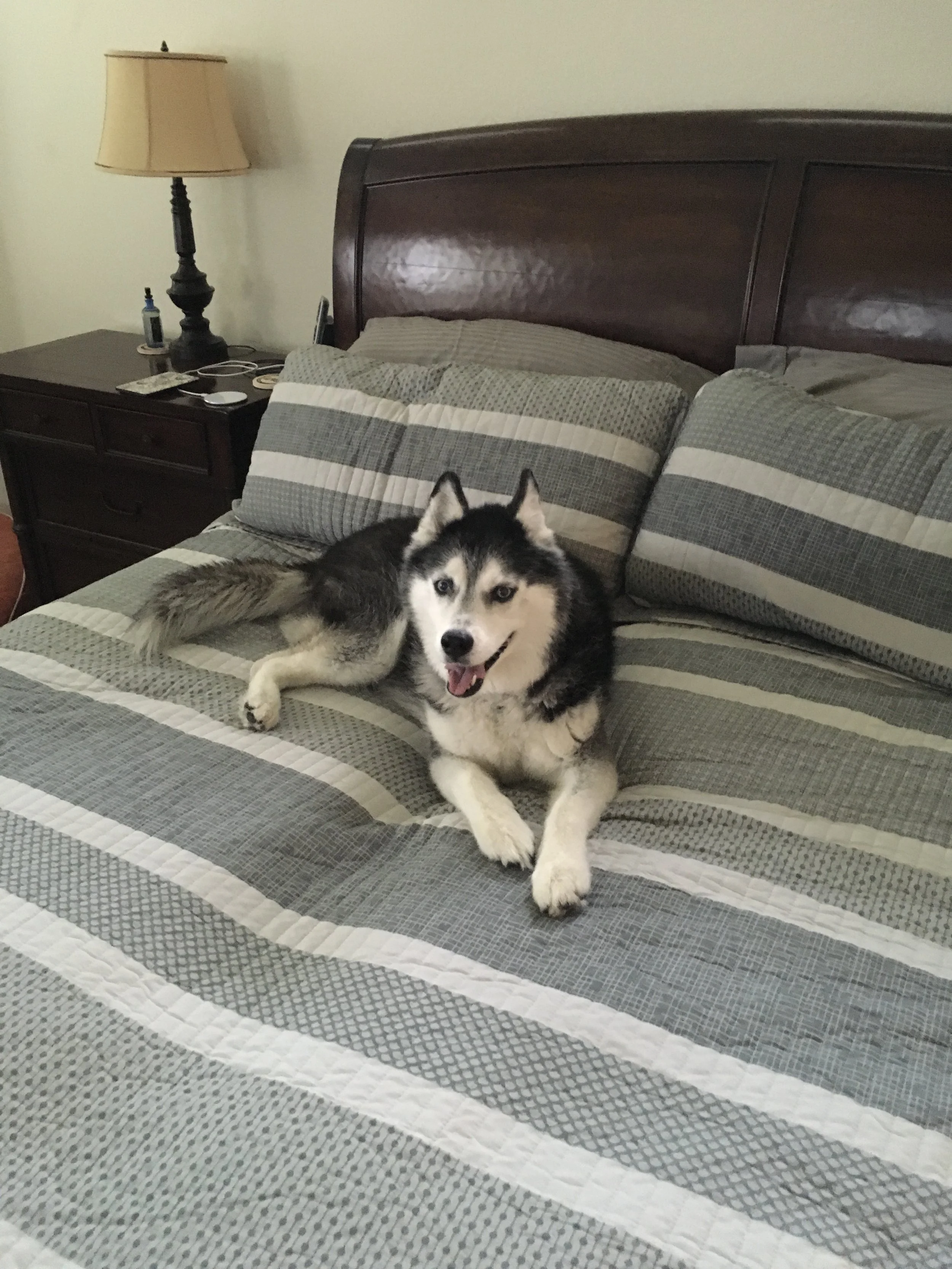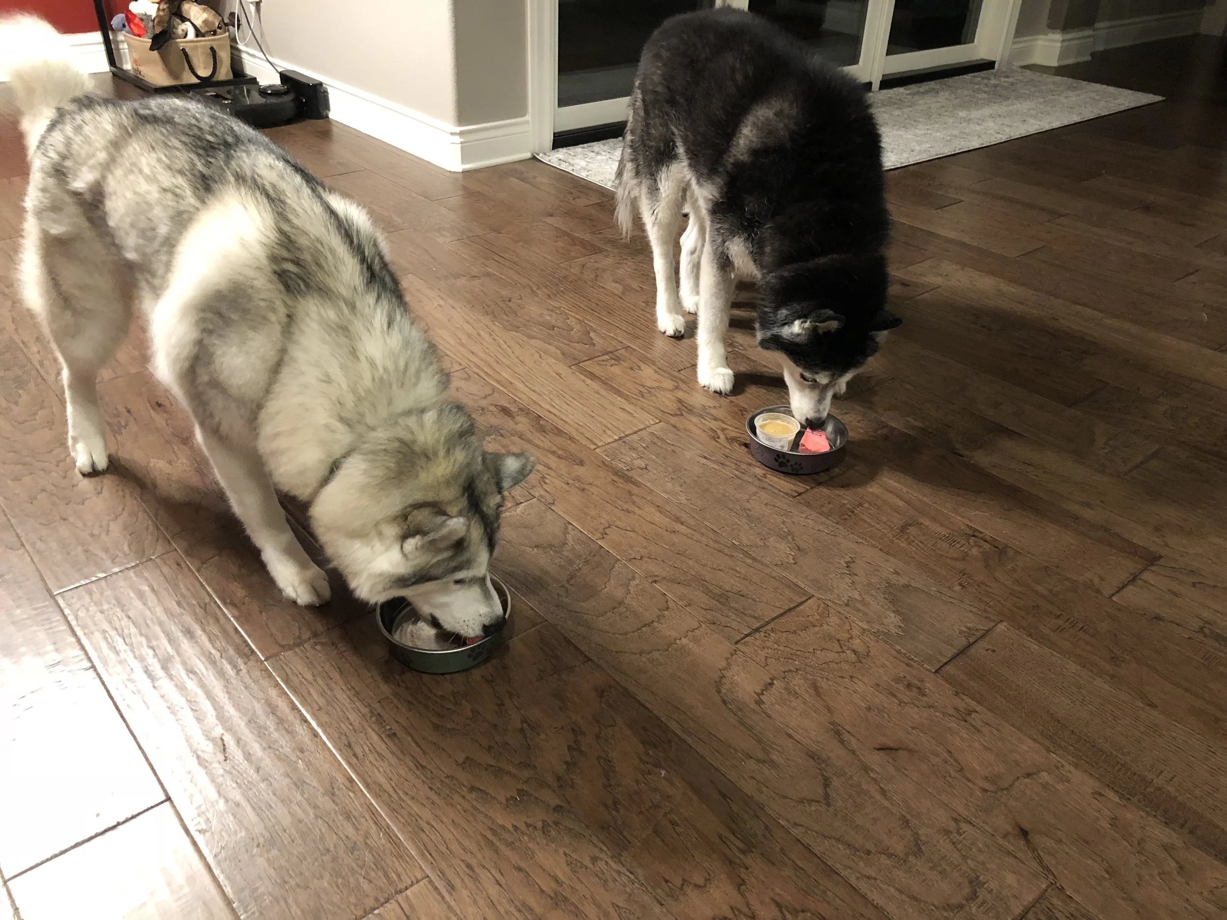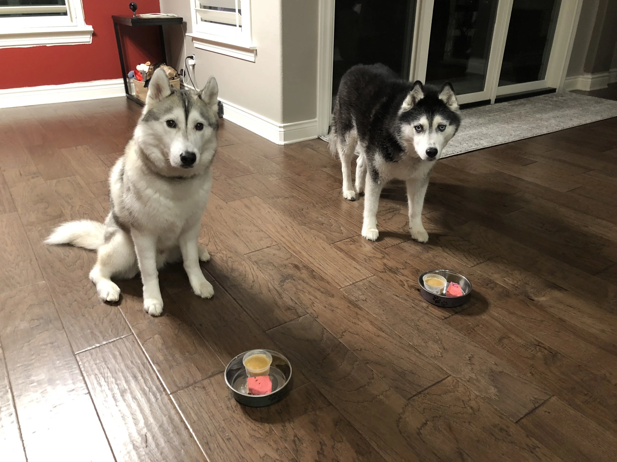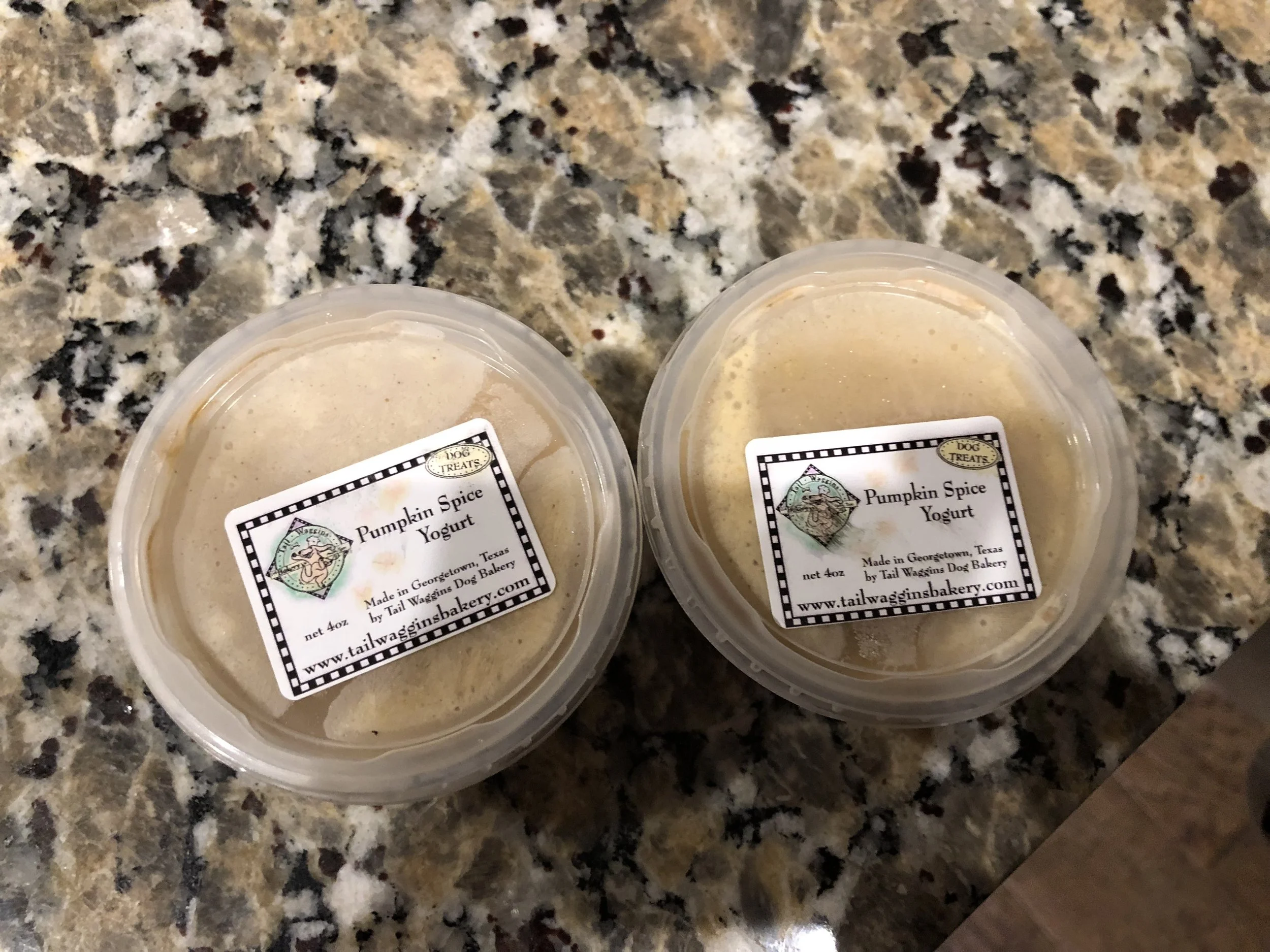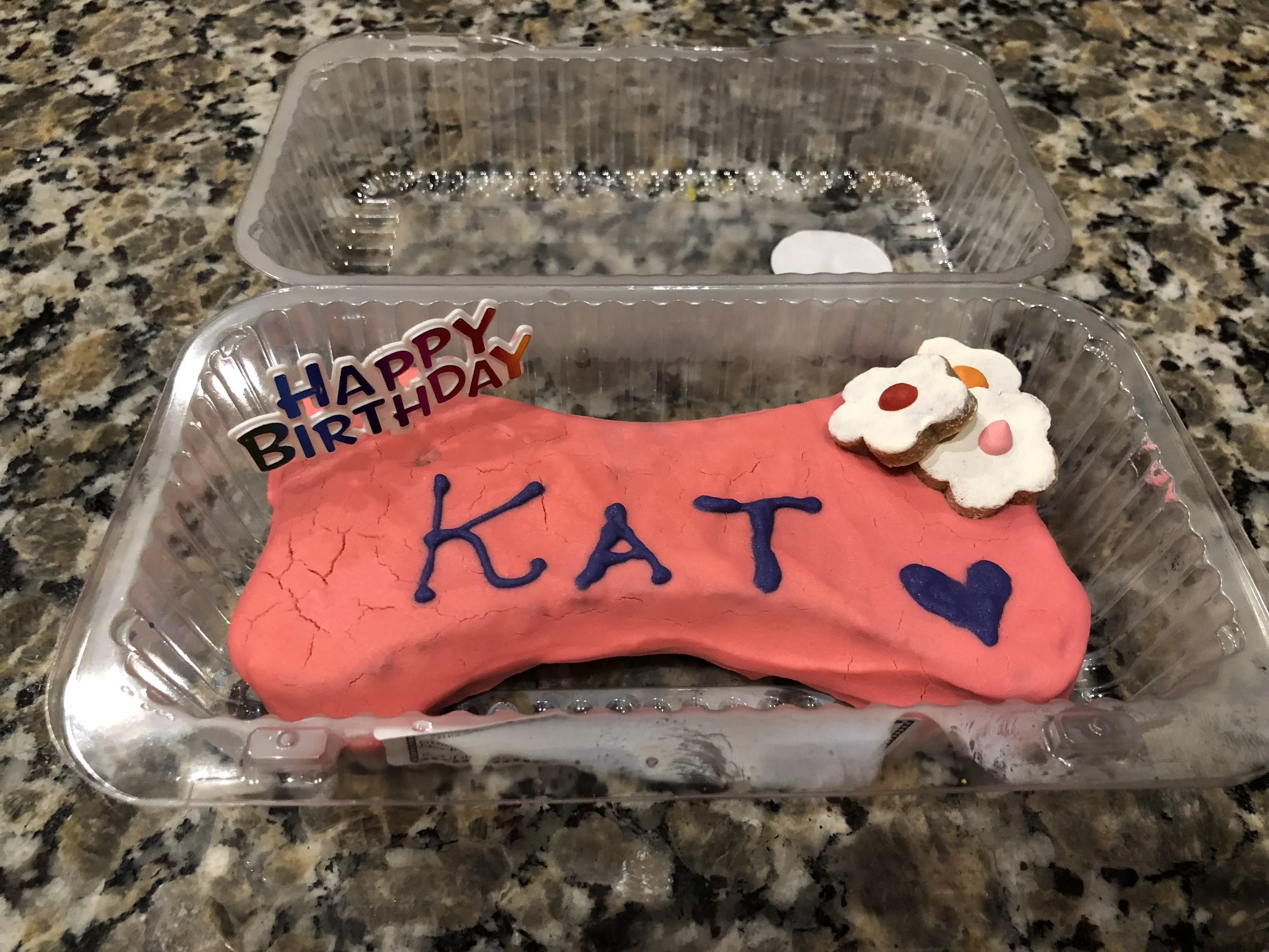 We spent the day hanging out at home while David worked on painting the kitchen. In the evening, we celebrated with cake and ice cream from Tail Waggins’ Dog Bakery. Kat and Gus had apple, bacon, and cheddar cake with some pumpkin spice ice cream to go with it.