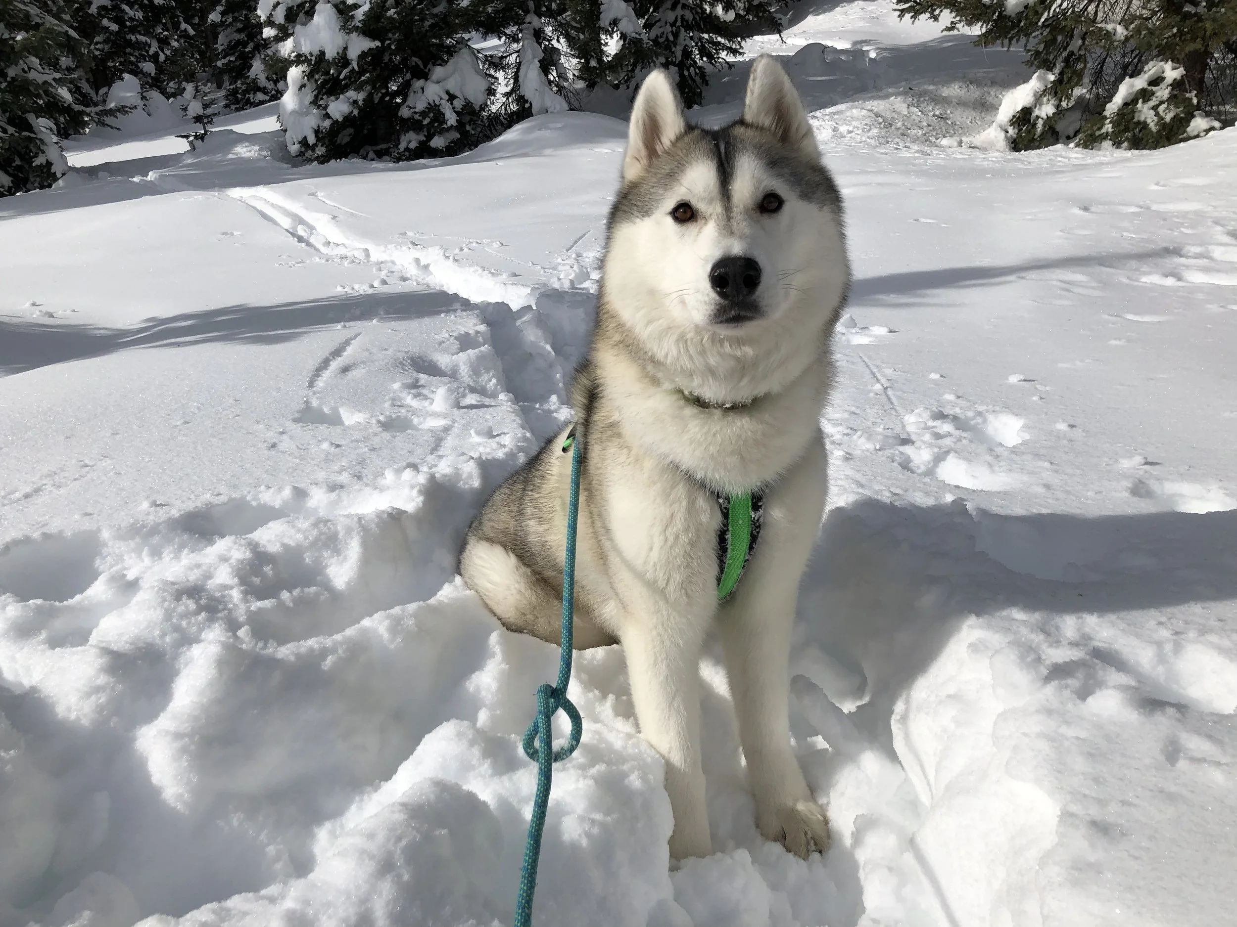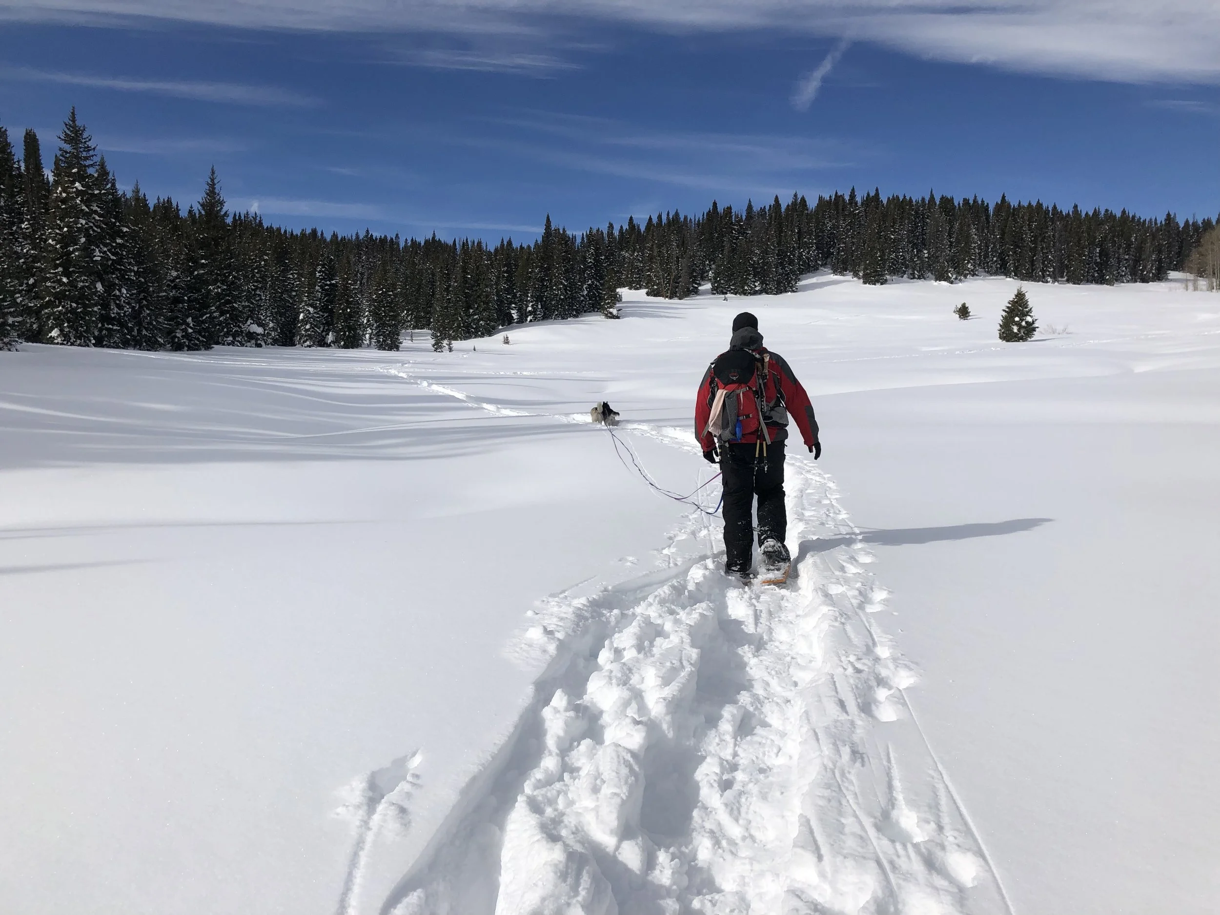 While in Steamboat, we went snowshoeing on two different trails on Rabbit Ears pass. Thanks to our friends Zorro, Jack, and Rudy (and their mom) for the recommendation. We had great weather on the first day. Kat was so excited to be in snow again.
